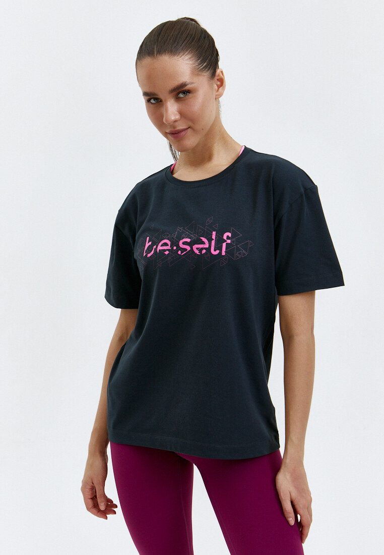 Футболка с геометрическим принтом BeSelf графитовая